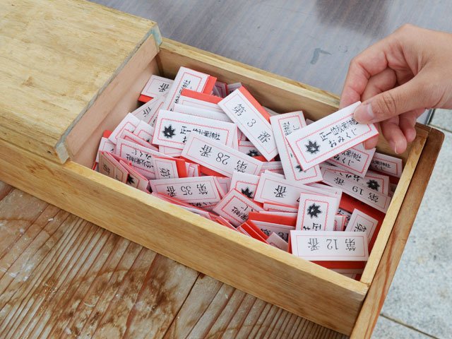 当社には種々のおみくじがありますが、特に上社にある「皿投げみくじ」はおみくじだけでなく、素焼きの皿(かわらけ)3枚に願い事を書いて目標の輪に向かって投げ、見事輪の中を通れば願いが叶うとされています。