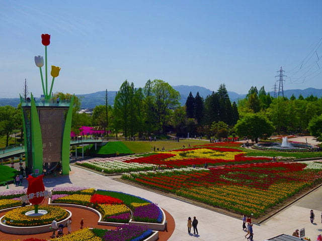 チューリップタワー、チューリップスカイウォークからの大花壇の地上絵は必見です。